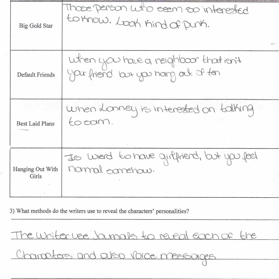 One thing that could be improved upon in this lesson is more clarification around the main plot of the game and the various side stories that are also being told. This student has a clear understanding of the main plot regarding Sam and her interest in befriending Lonnie, but did not really address the side stories I asked about in question 4. There is also a sad story of a struggling father hoarding all of his unpublished books with letters insinuating he should give up being an author. This isn't my greatest concern since this student was still able to characterize Sam well. Looking at question 5 she even went on to explain how looking at the characters' actions in the context of the story helps her learn about their personalities.